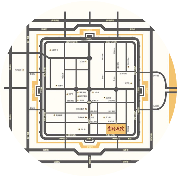 云路庭院保留了四合院最傳統與經典的所有元素,而同時又不失舒適與溫馨,成為大同四合院新生命的典范。其南側的的北都街,西邊的云路街、華林商廈、大富翁、仿古街,北邊的文廟等各種商業與人文標簽以及便利的交通位置,都讓云路庭院具有了極高的文化價值與商業價值。