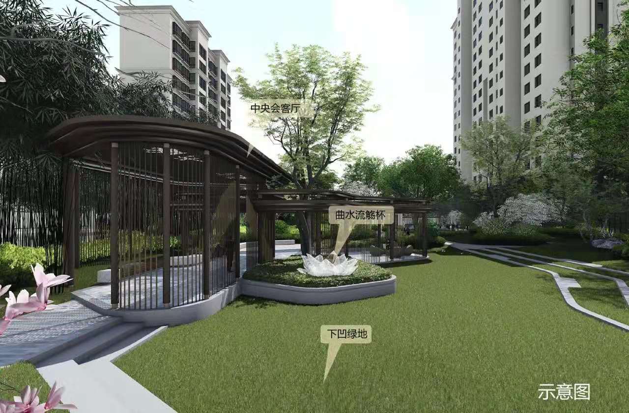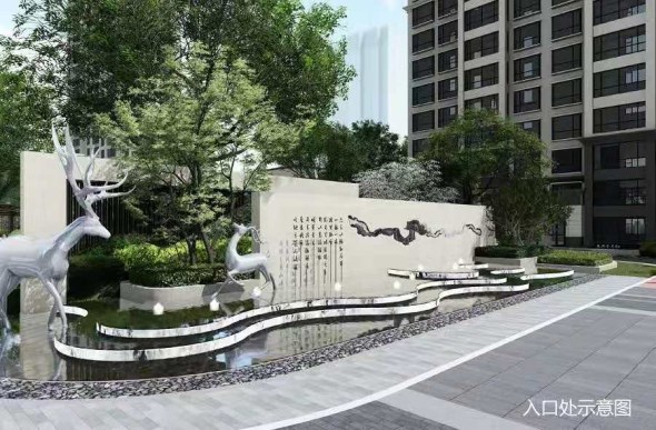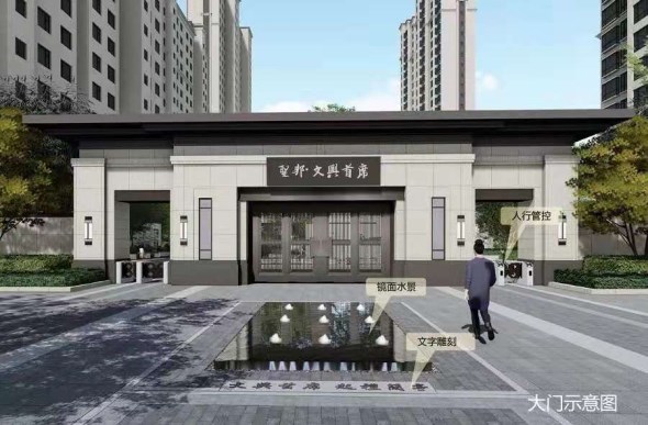 在文興首席項目的主入口、中央會客廳、單元入戶處等景觀節點,分別融入了蘭亭雅褉、曲水流觴等詩意場景,雖無絲竹管弦之盛,一觴一詠,也足以令業主攜三兩好友暢敘幽情,安撫平日里快節奏生活之下,一顆疲累的身心。