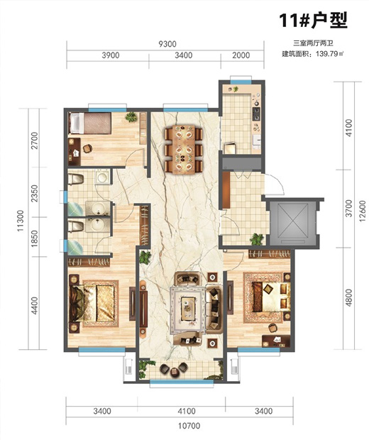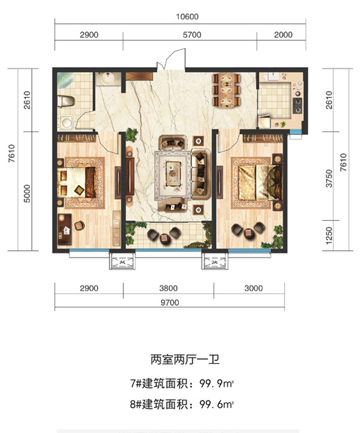 >> 上華琚建面約99.9㎡的溫馨兩居室,視野開闊,戶型格局方正,人性化設計,精巧布局毫無浪費面積,整個空間都有合適的活動面積。半開放式廚房設計,烹飪美食與家人更加親密互動;餐廳、客廳、廚房一體相鄰,美味加速傳遞。